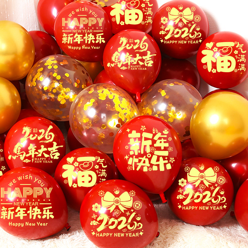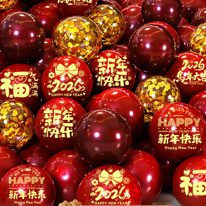 气球2026新年快乐红色元旦跨年春节装饰店铺学校餐厅年会布置用品