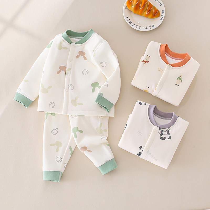 婧麒婴儿夹棉秋衣套装秋冬季儿童分体宝宝保暖内衣衣服男女童秋裤