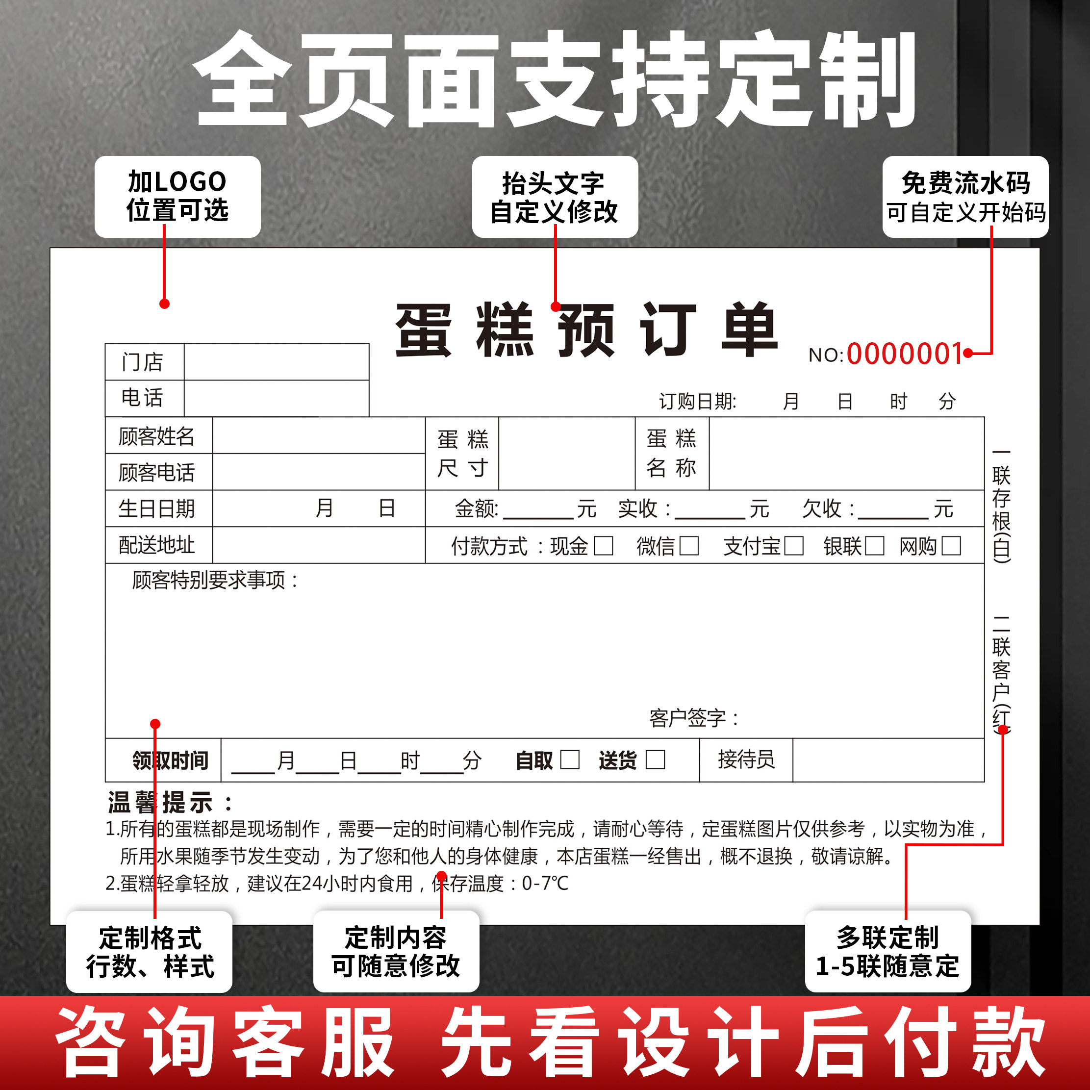 生日蛋糕店订单本花店预定单鲜花订购单订货开票记账本二联烘焙房预订签收票据甜品面包单据订制三联收据定制