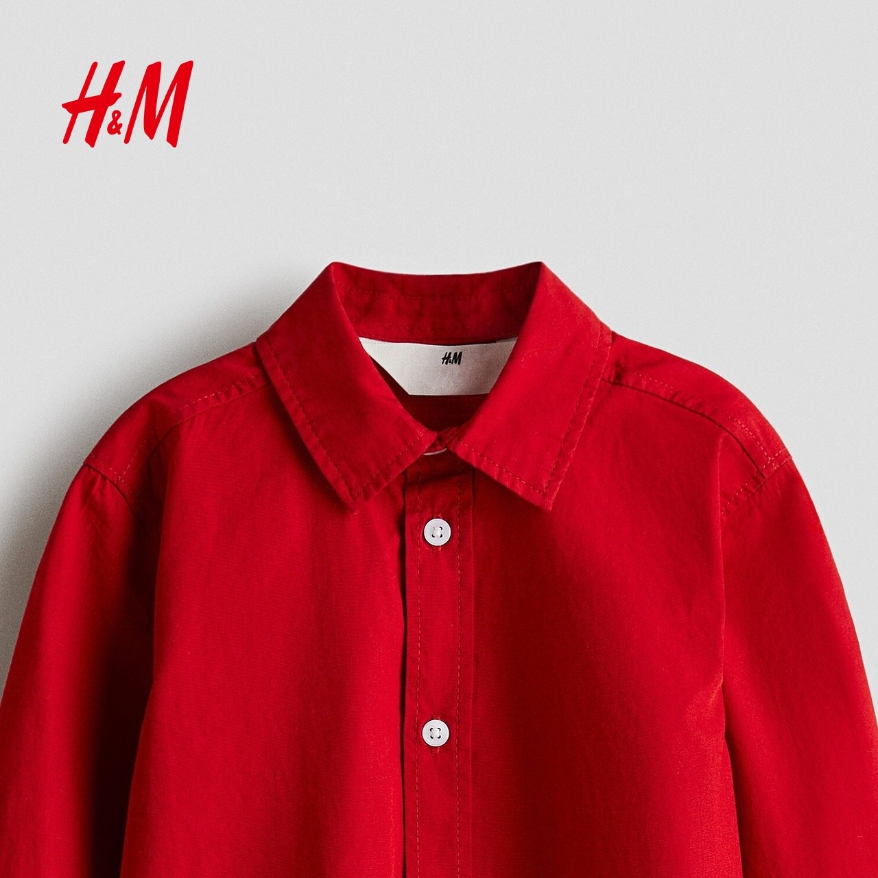 HM童装儿童男童衬衫2025春季新款棉质红色马年拜年服衬衣1289801
