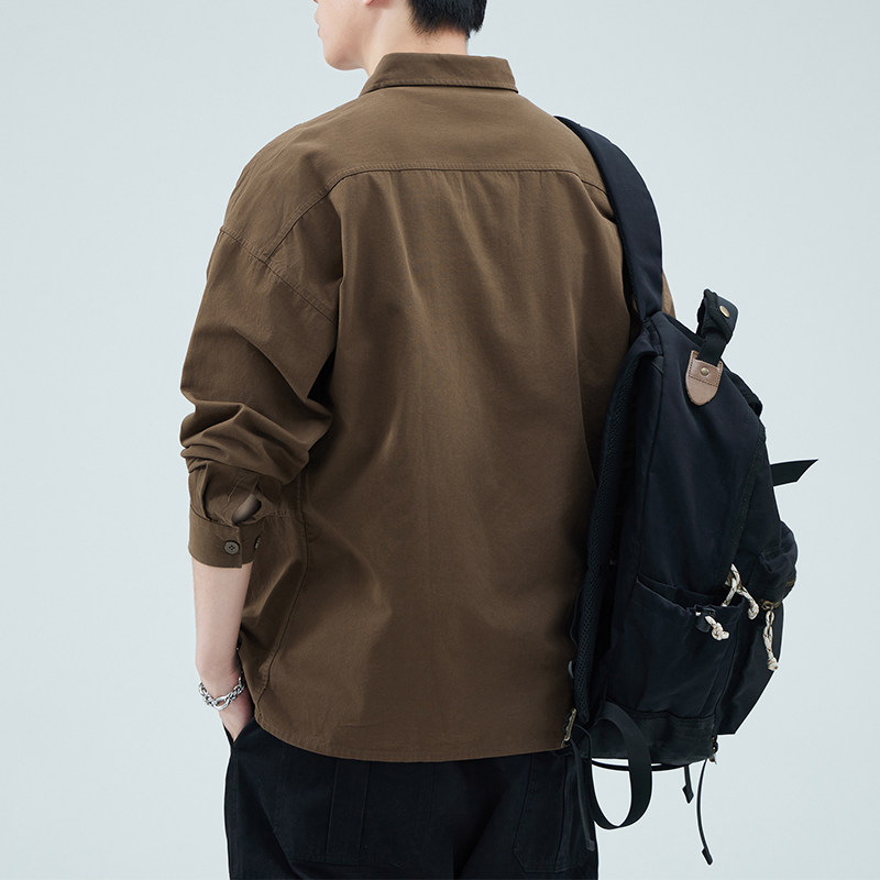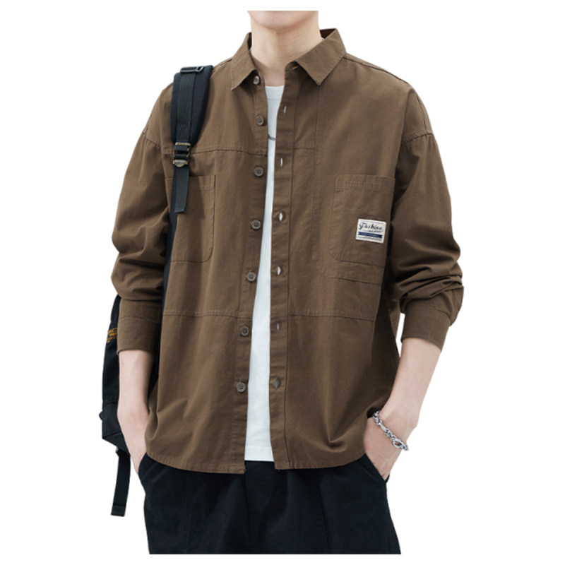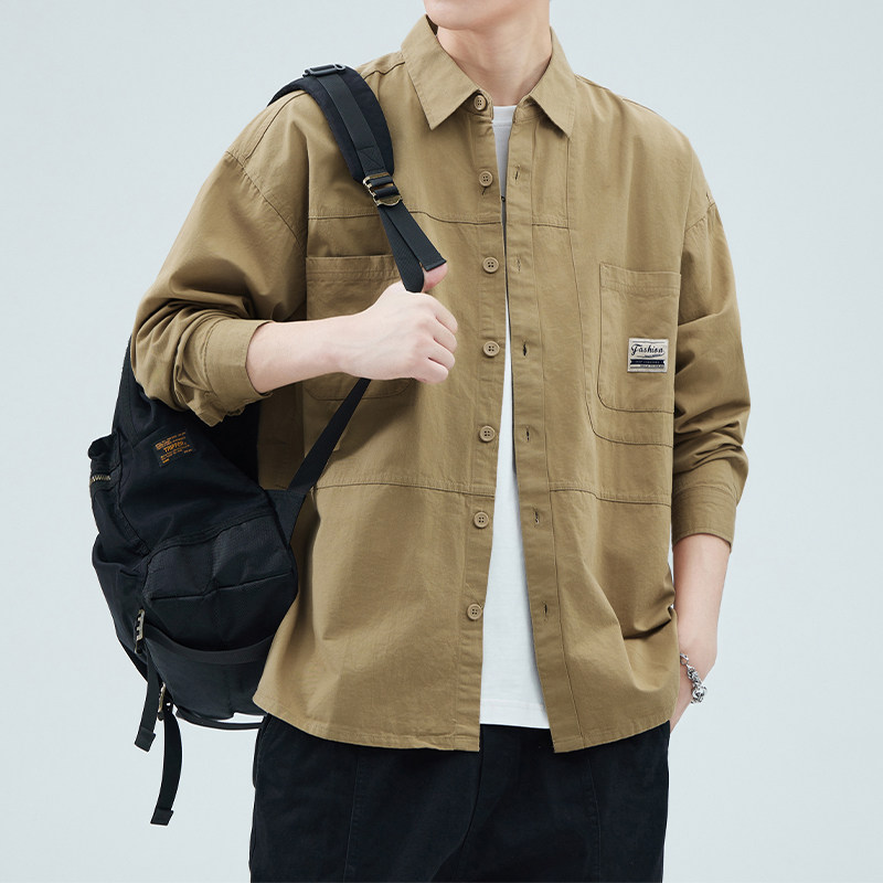 撤标撤柜(D)纯棉长袖衬衫外套男春秋款宽松潮牌百搭翻领工装衬衣