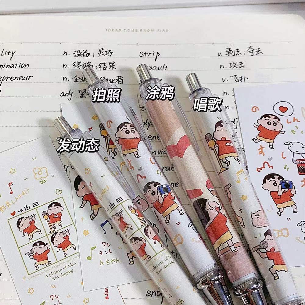 蜡笔小新可爱学生高颜值按动笔中性笔考试用0.5速干刷题笔限量版