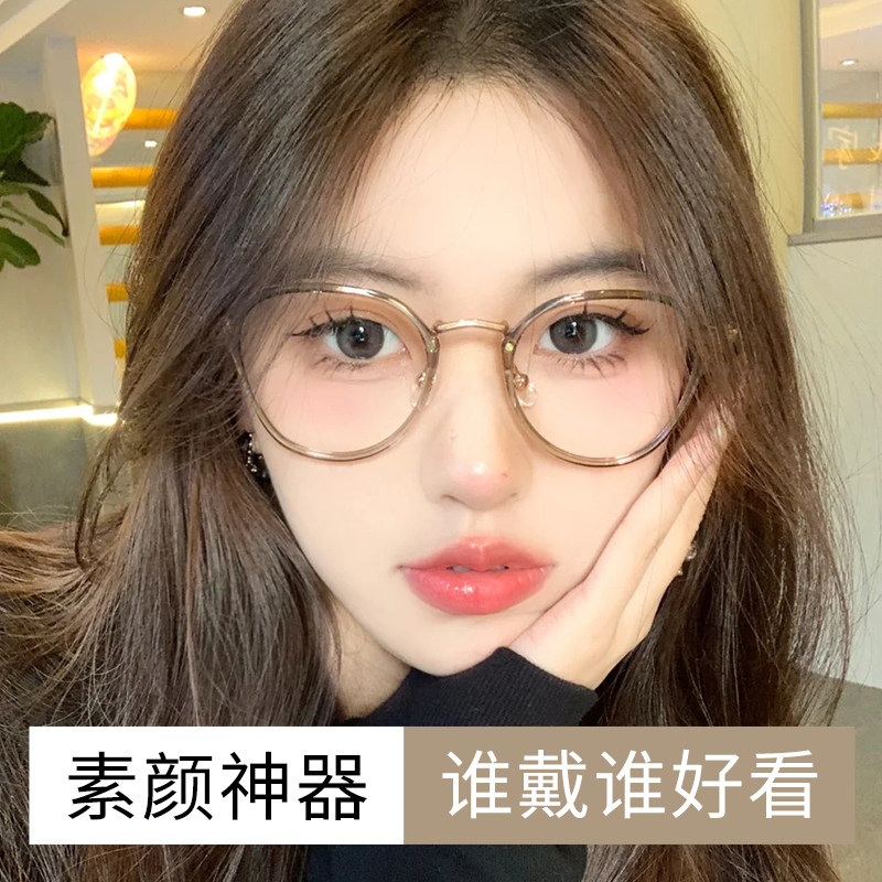 超轻眼镜女可配近视度数冷茶色素颜神器大框显脸小眼睛方圆脸镜架