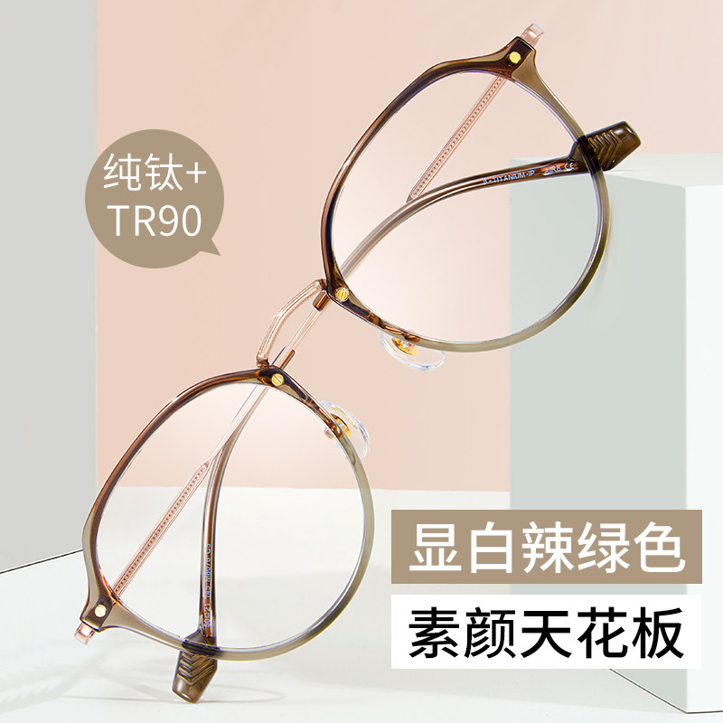 眼镜近视女可配度数镜片纯钛配防蓝光大脸显瘦眼睛框镜架超轻镜框