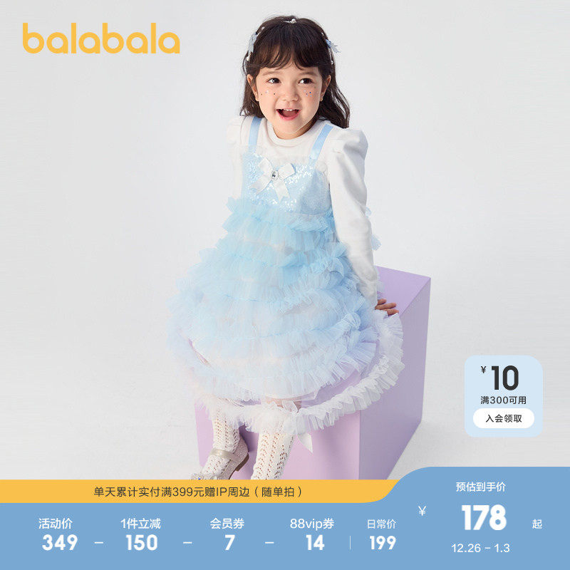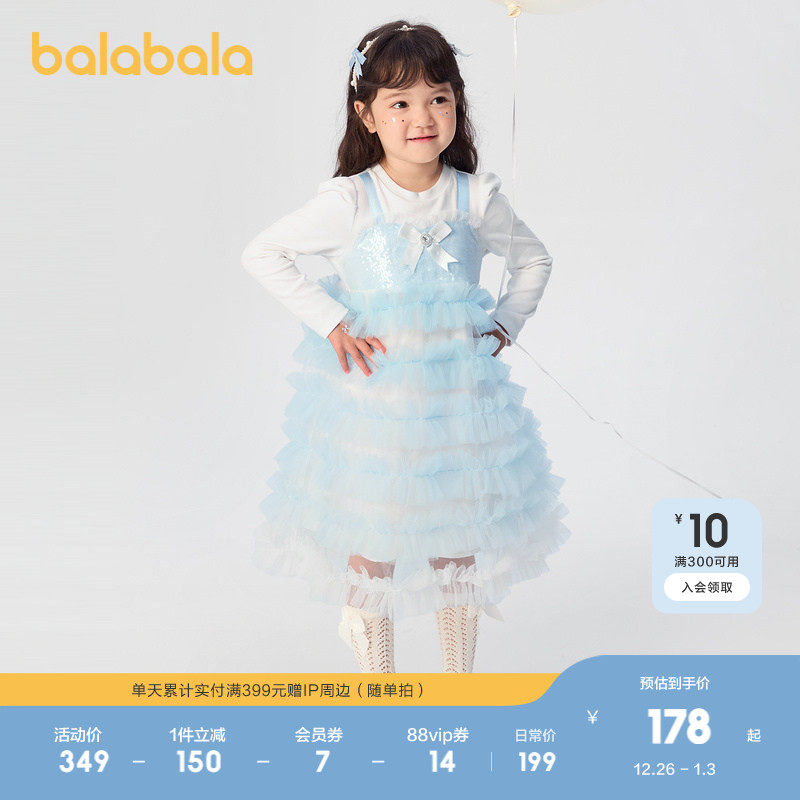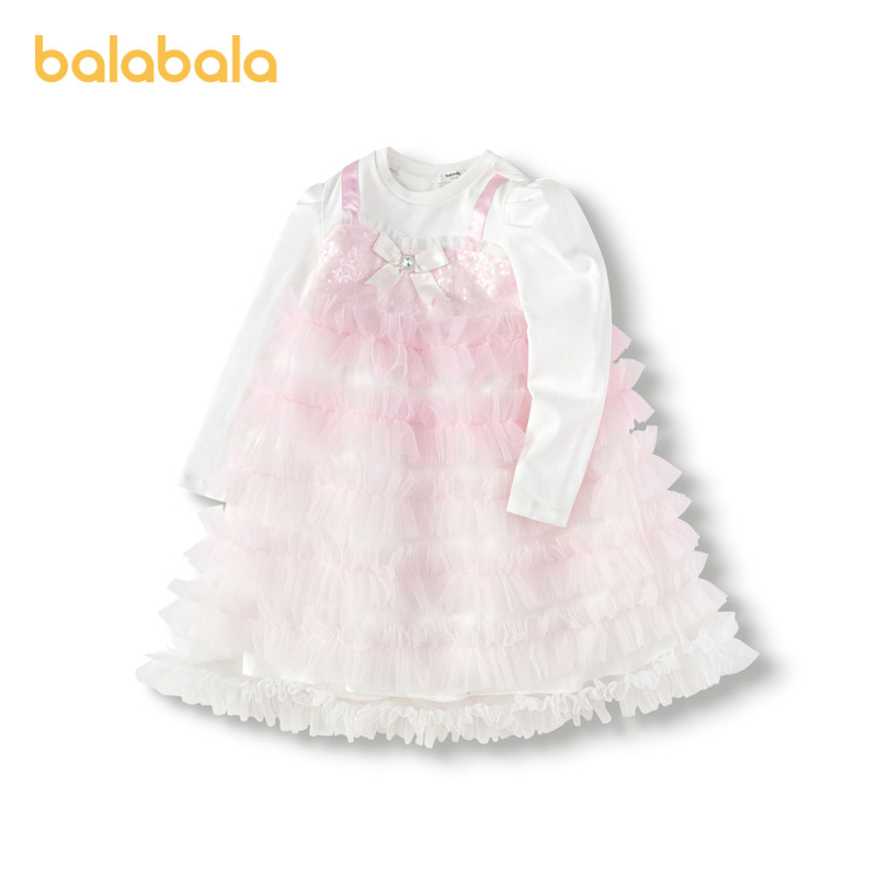 巴拉巴拉童装儿童裙子女童小童宝宝春秋装网纱蛋糕假两件连衣裙潮