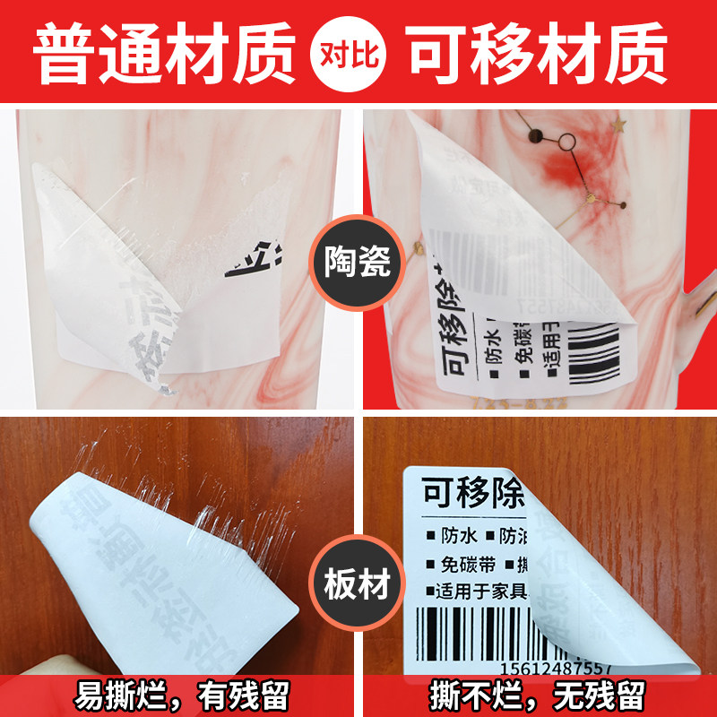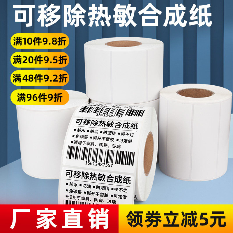 紫泰欣不留胶可移除热敏合成标签纸60*40 20 40 50 60 80 100防水可移除家具玻璃板材标签易撕取不干胶打印纸