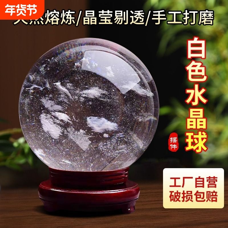 天然白色水晶球摆件奇石原矿石手工打磨高端装饰开业乔迁风水球