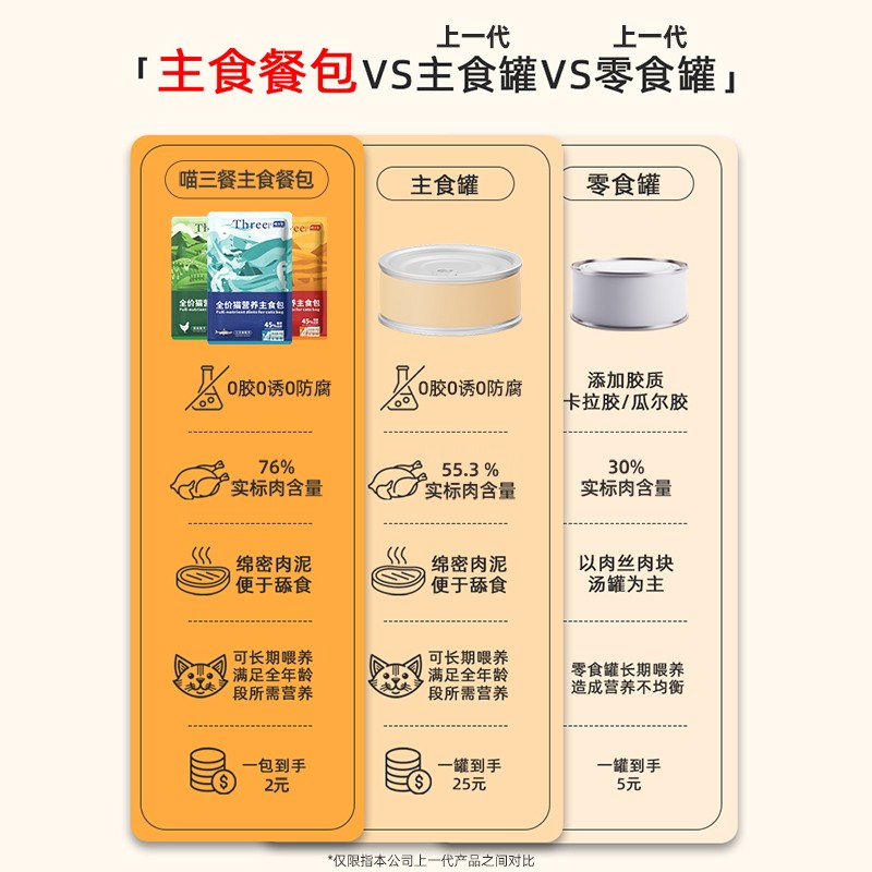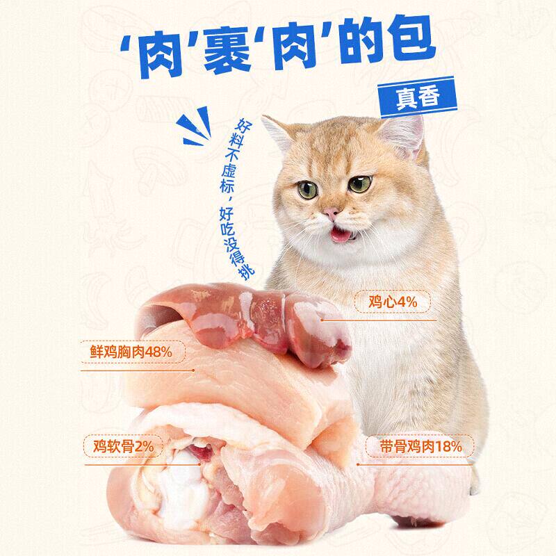 喵三餐主食猫饭猫咪餐包鲜肉营养补充全价湿粮鲜肉包猫粮袋装鸡肉
