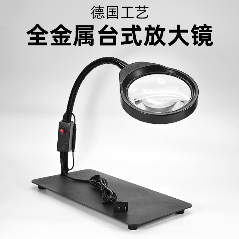 PDOK台式放大镜 金属底座10倍20倍带LED灯高清高倍老人阅读实验室/工厂/电路维修雕刻放大镜台灯工作台PD032C
