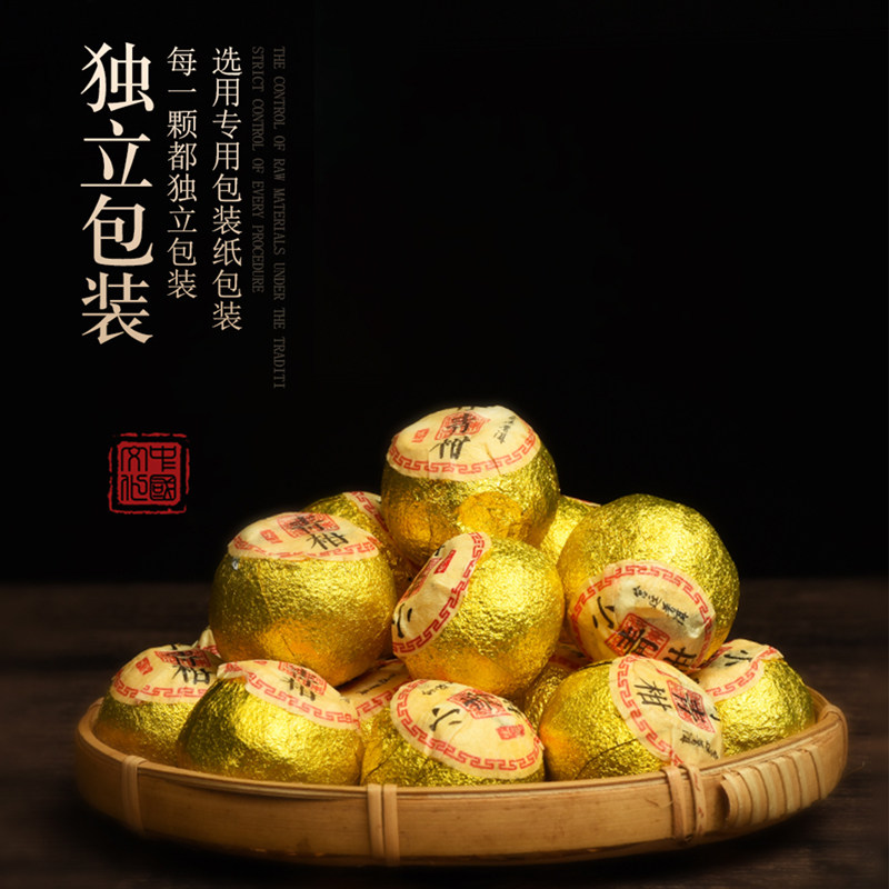 宫明茶叶 云南普洱茶熟茶糯米香小金砖普洱熟茶小圆饼320克礼盒装