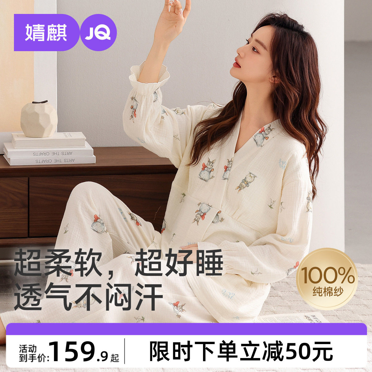 婧麒带胸垫月子服纯棉12月份秋冬季产后孕妇睡衣哺乳产妇家居服女