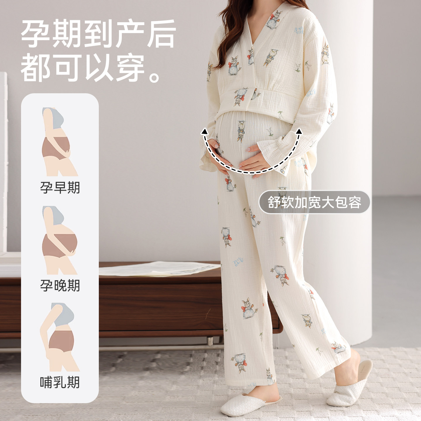 月子服纯棉春秋冬季产后12月份孕妇睡衣可外穿喂奶产妇哺乳家居服