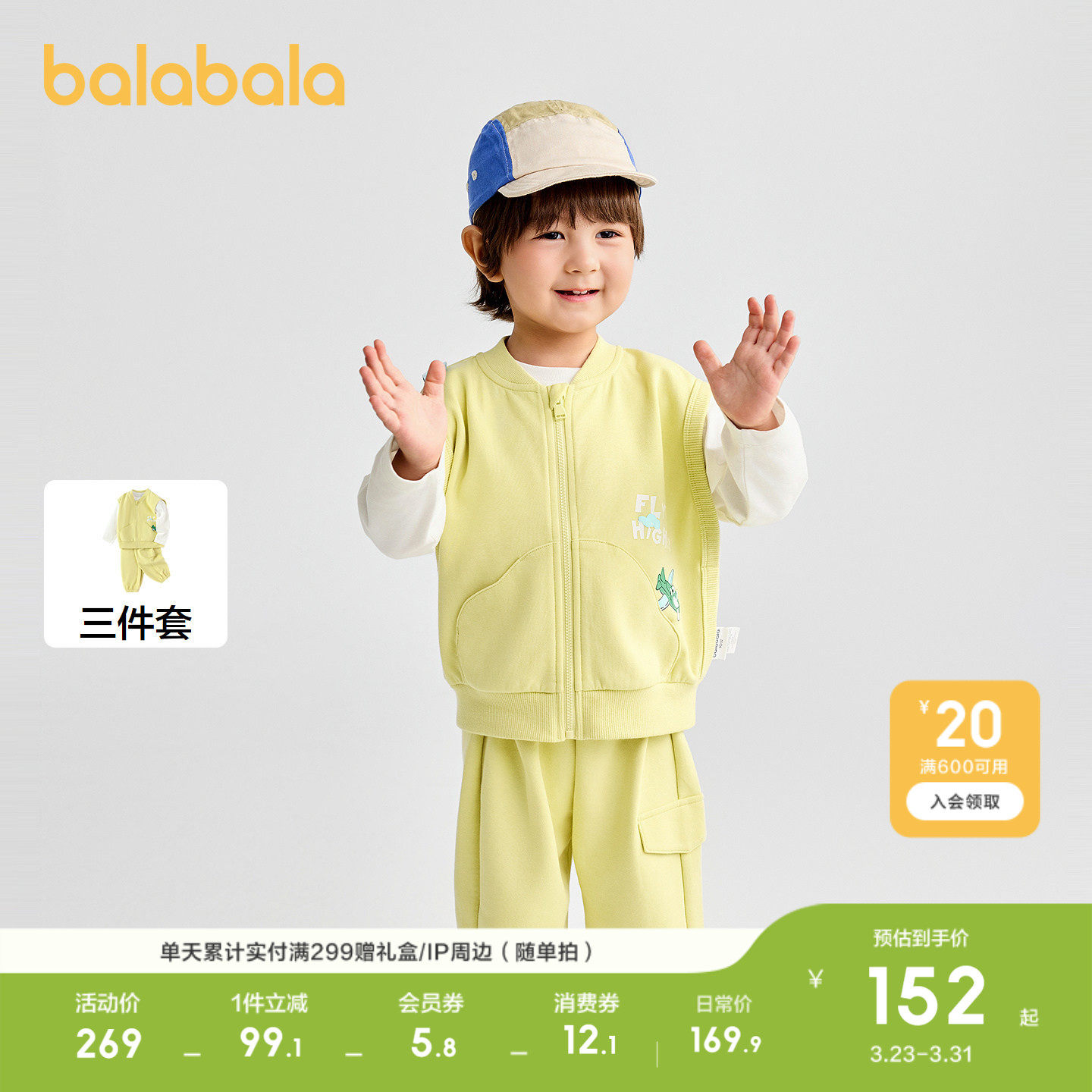 巴拉巴拉童装宝宝套装男童马甲三件套宽松2026休闲春礼物时尚潮酷