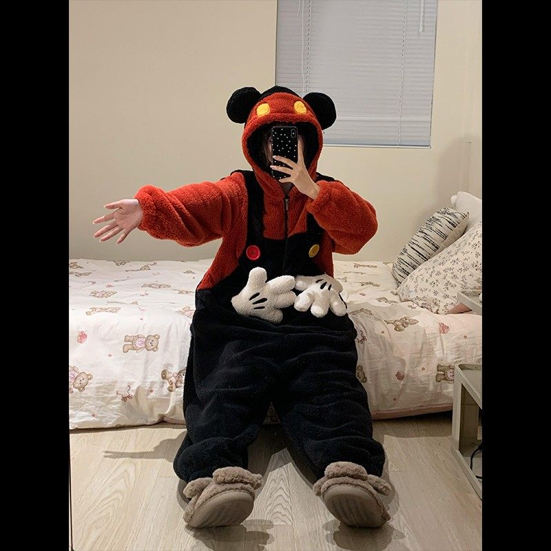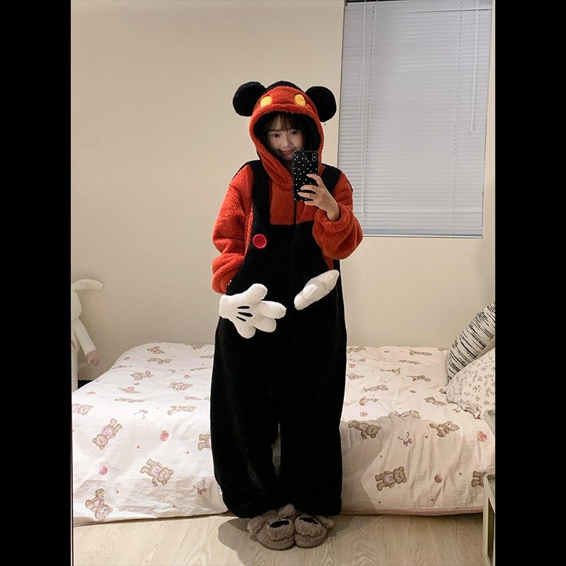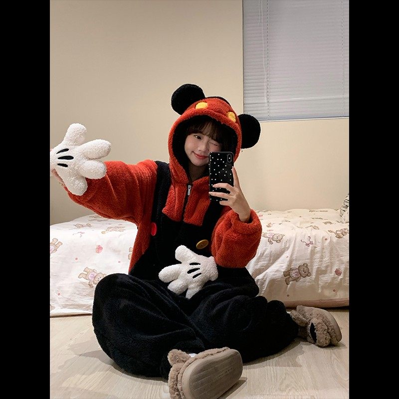 米奇珊瑚绒连体睡衣睡袍秋冬可外穿可出门休闲家居服套装加绒加厚