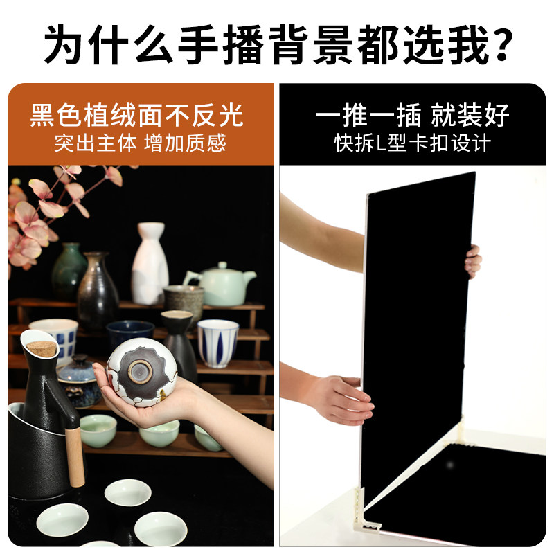 手播背景板黑色吸光背景板纯黑底背景布拍照拍摄道具蛋糕甜品珠宝高达手办文玩手串小摄影棚模型黑布不反光