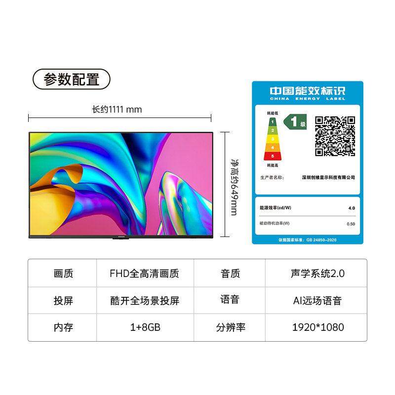 创维酷开M50 50英寸高清投屏智能家用液晶电视机官方旗舰店正品55