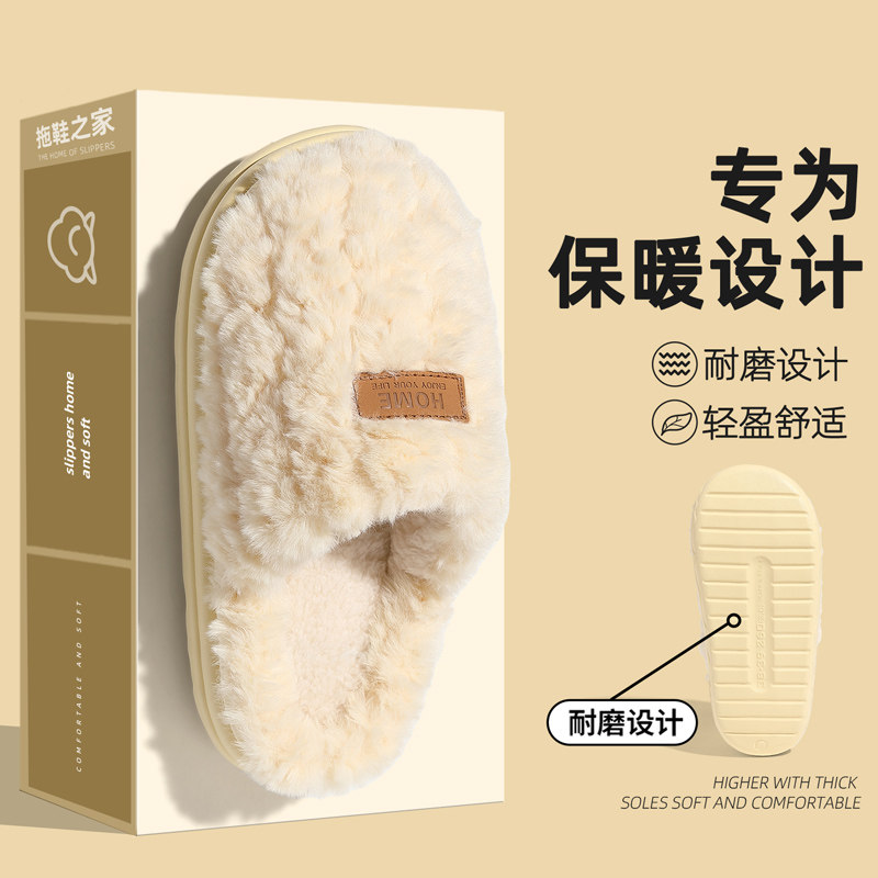 棉拖鞋女款秋冬天2024新款毛拖家居保暖加绒厚底毛绒情侣软底拖鞋