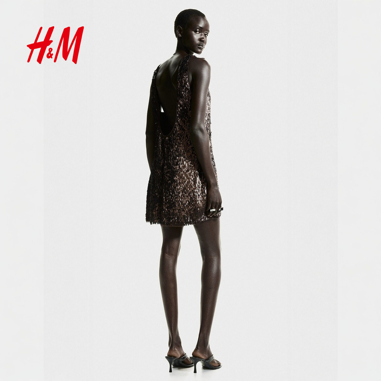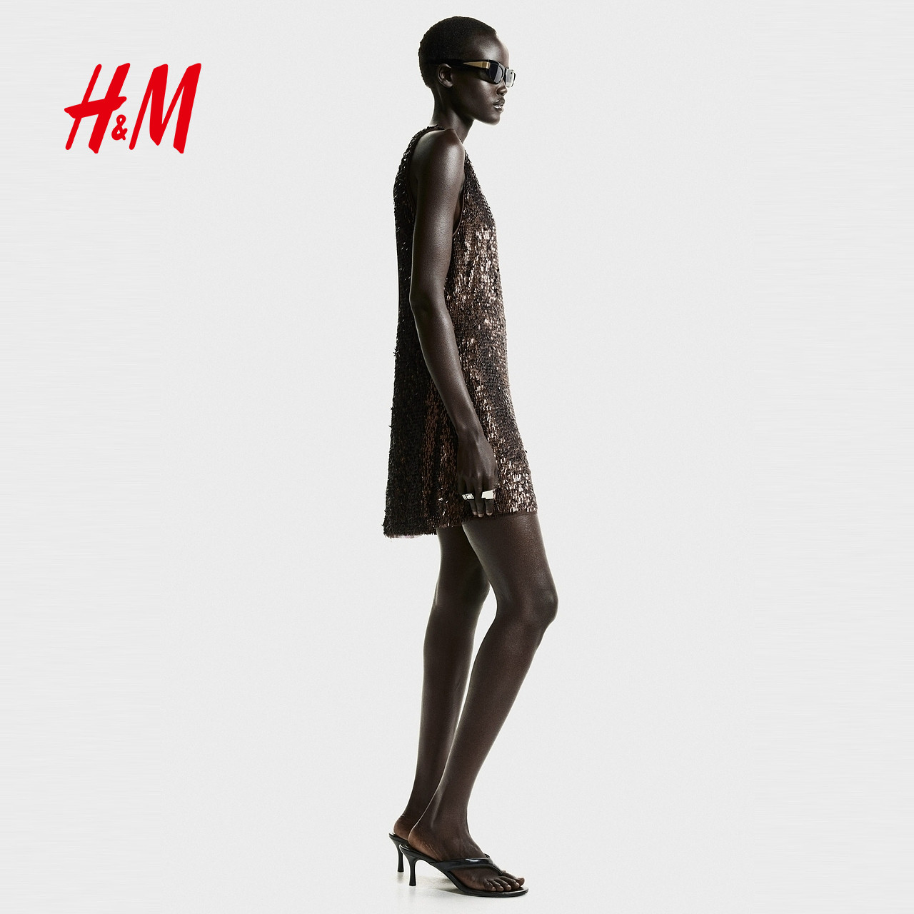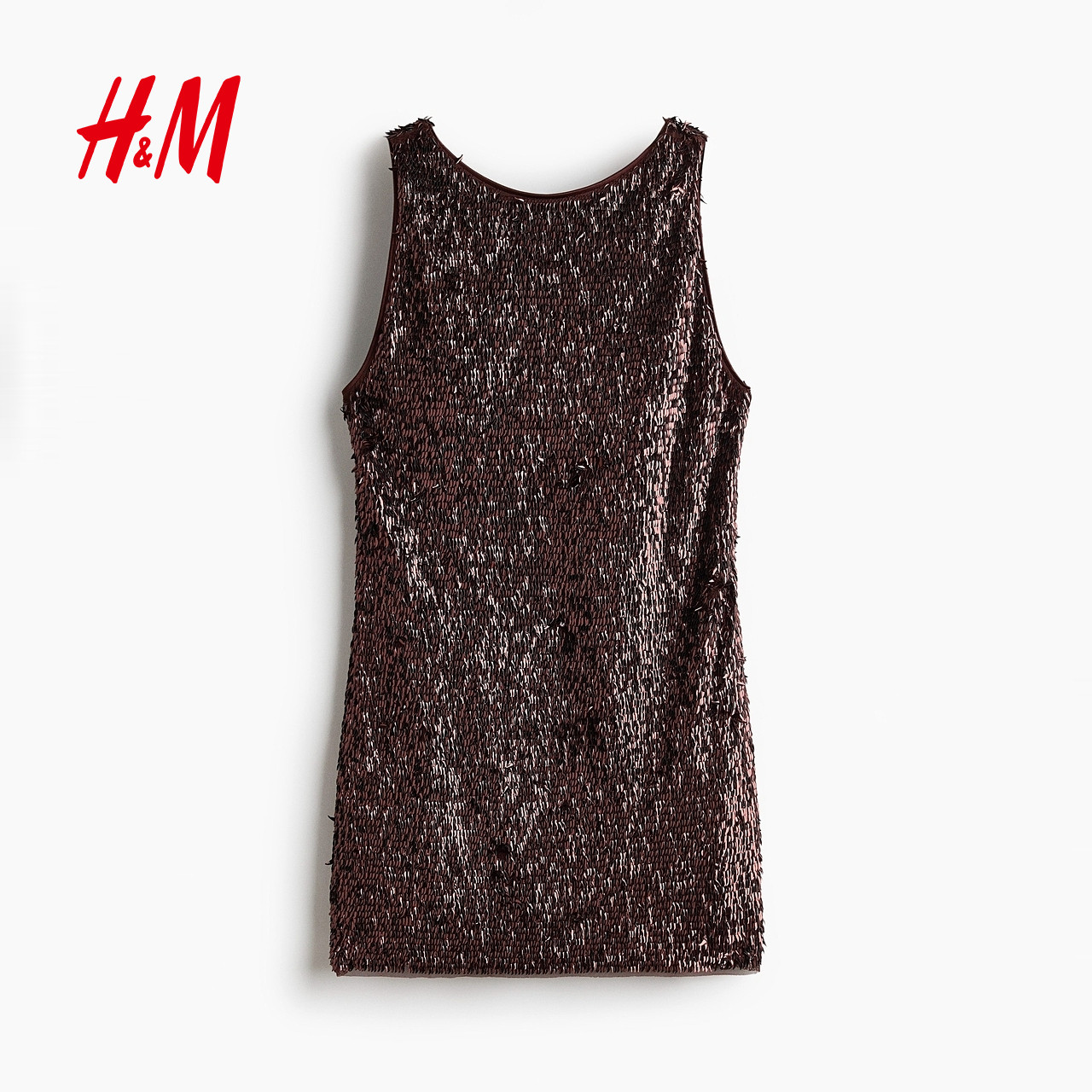 HM女装连衣裙2025冬季新款晚宴亮片老钱风无袖party小礼服1323522