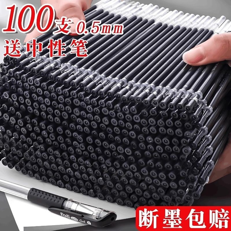 笔黑笔芯黑色中性笔全针管芯0.5子弹头碳素水笔中性笔速干考试专用用黑笔替换笔芯初中生文具用品红色蓝色