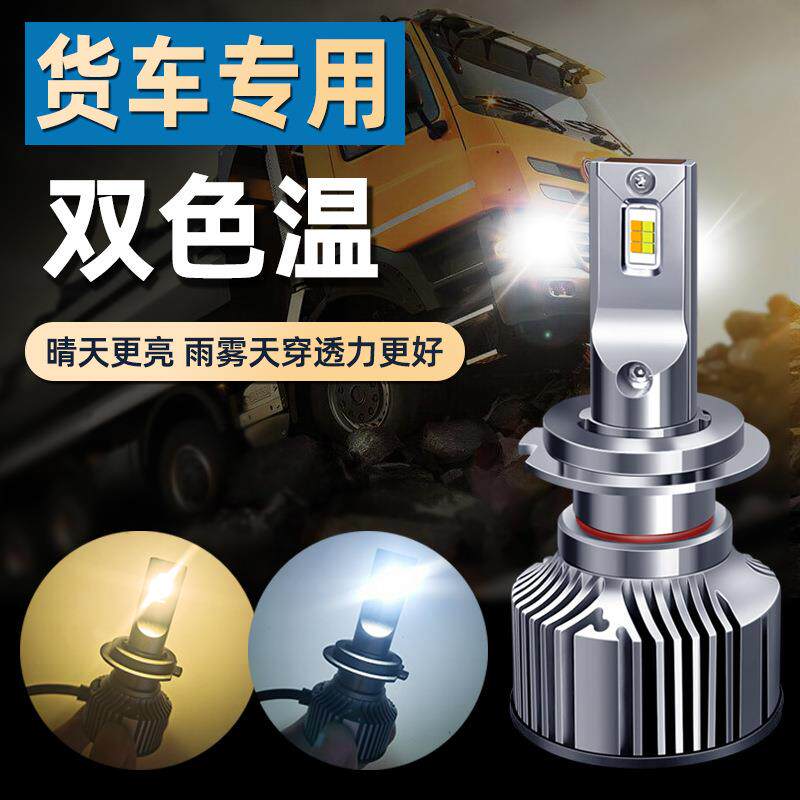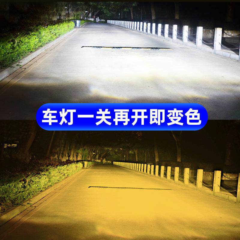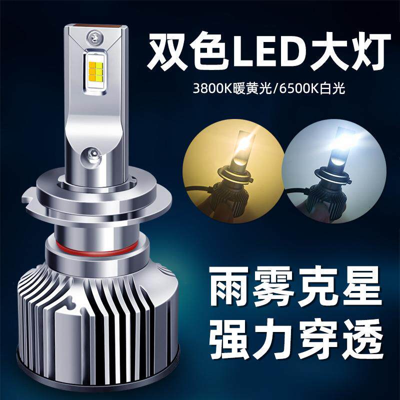 汽车双色LED大灯黄白双光切换前照灯泡H7车灯9005通用改装LED大灯
