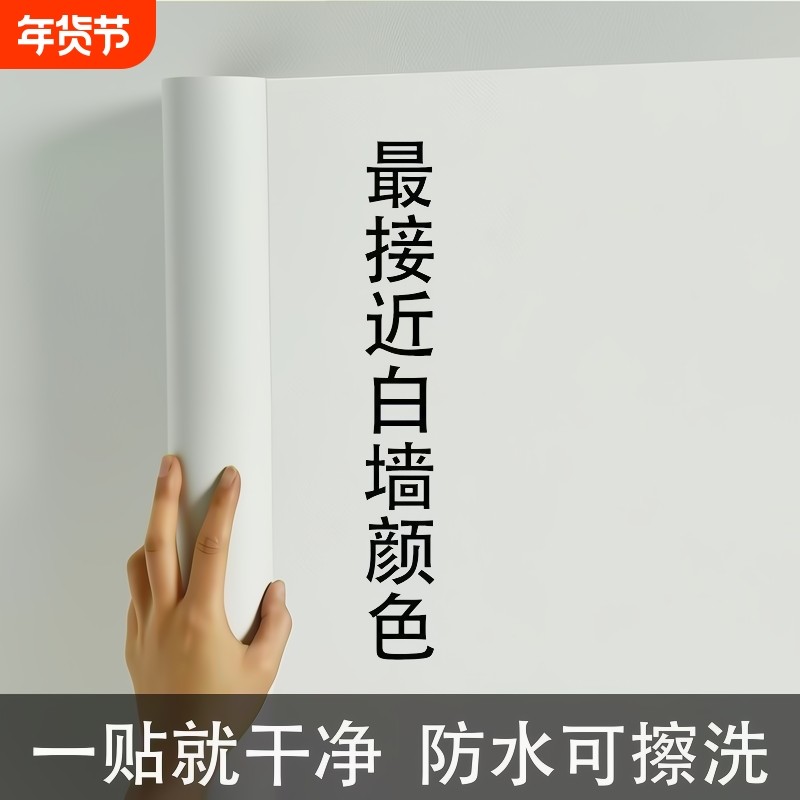 纯白色墙纸自粘天花板墙面pvc壁纸防水防潮墙贴贴纸背景墙壁宿舍