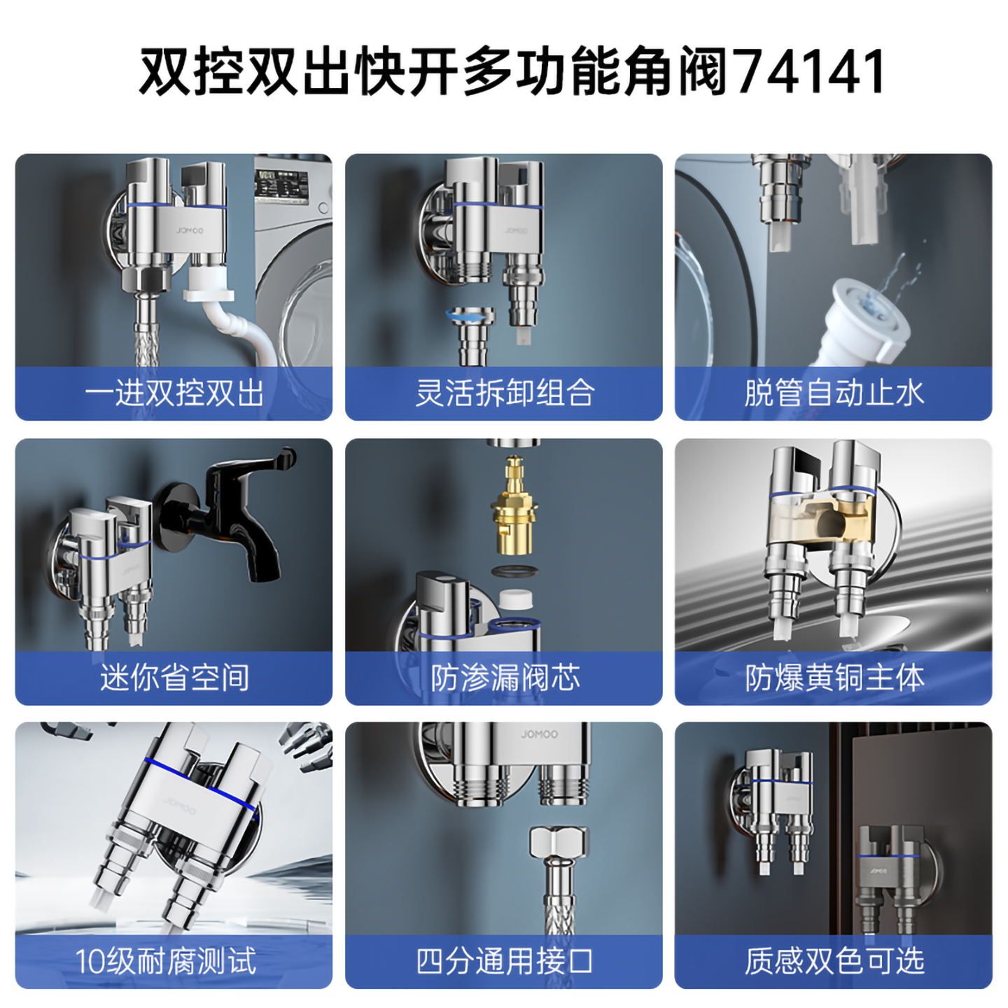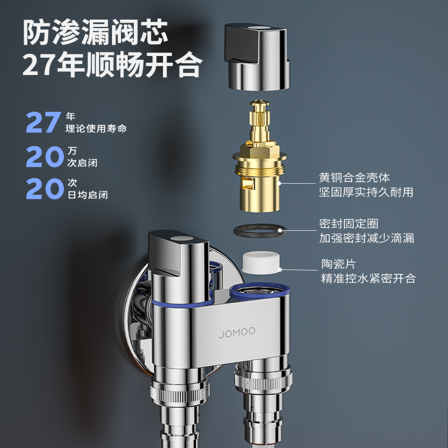 九牧三通角阀一进二出双把双控一分二分水器开关双出水阀门水龙头