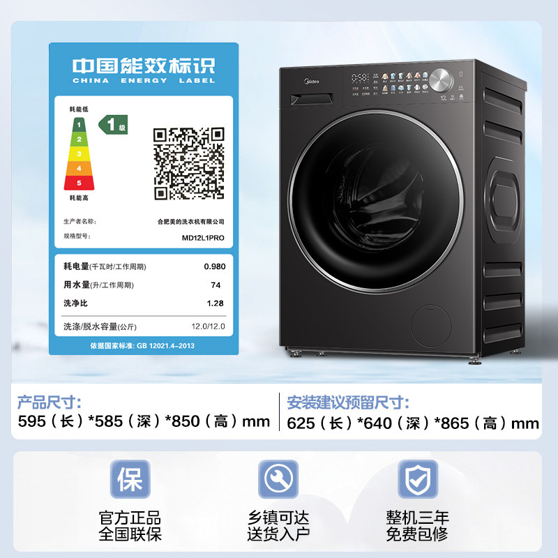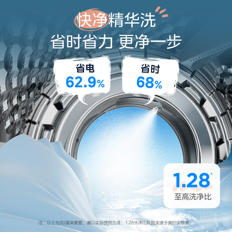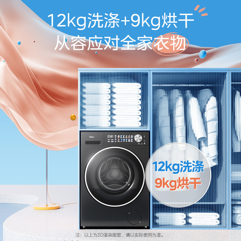 美的12kg纯平自由嵌精华洗家用全自动智投除菌洗烘一体滚筒洗衣机