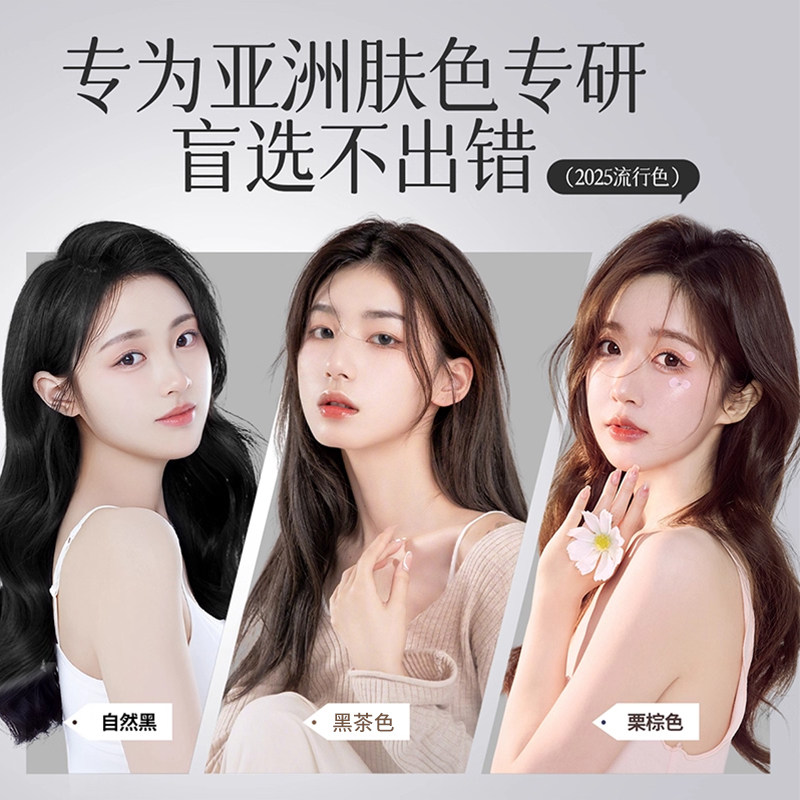 韩金靓正品染发剂黑茶色棕植物泡泡刺激无纯自己在家染发膏盖白女