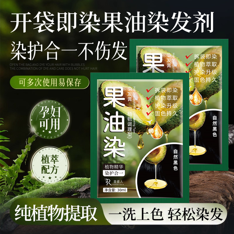 果油染发膏植物果染剂官方旗舰店正品天然无刺激黑色纯男女士专用