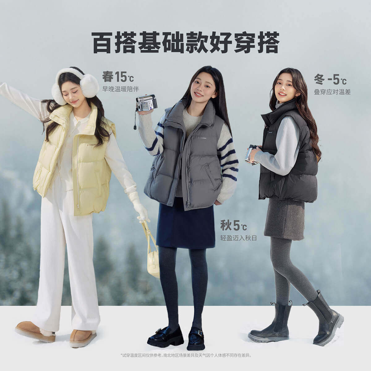 骆驼女装羽绒马甲2025秋冬新款白色轻薄短款外穿保暖背心男女外套