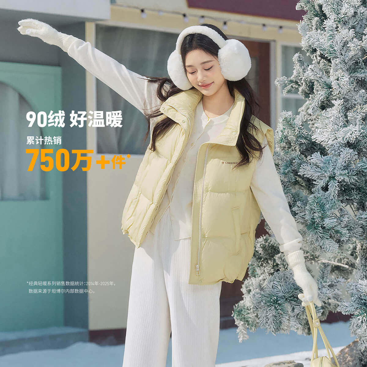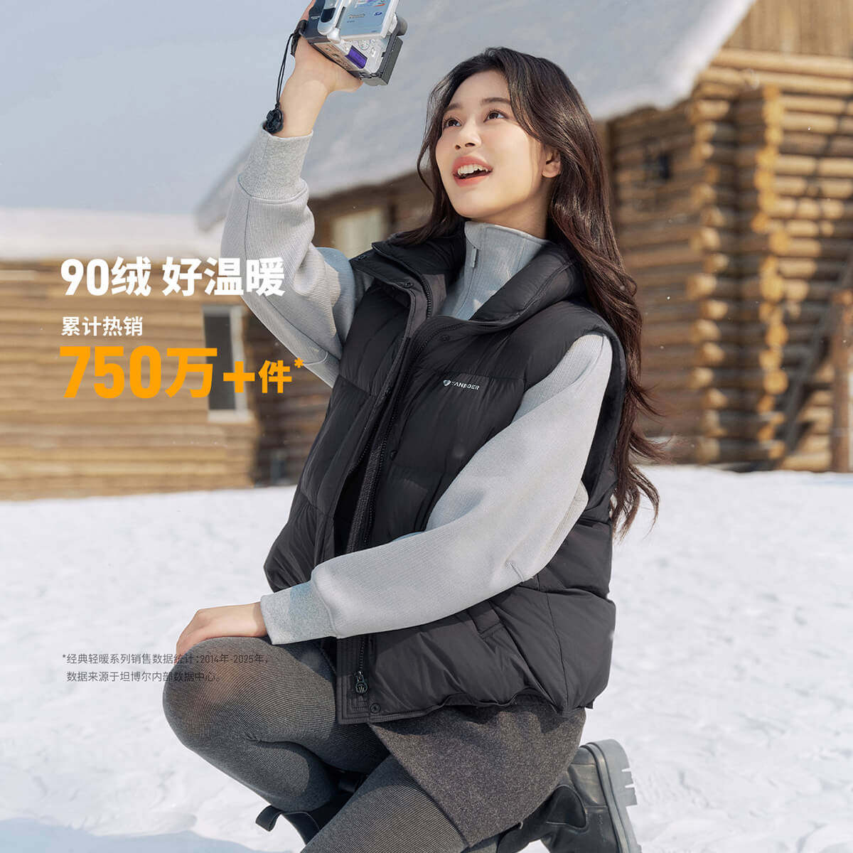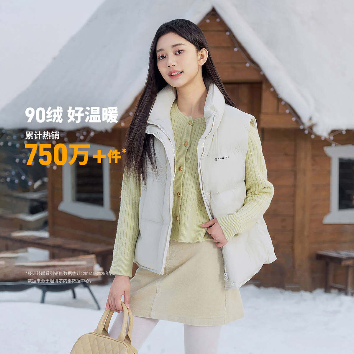 坦博尔羽绒马甲女2025春季新款立领短款加厚百搭外穿保暖羽绒背心