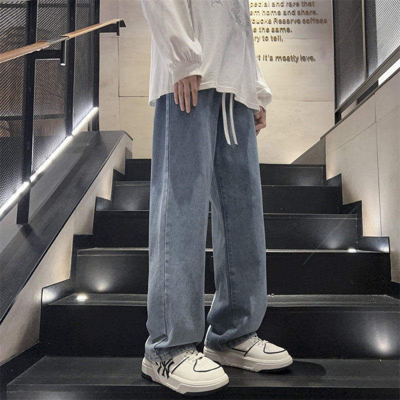 复古牛仔裤男宽松直筒松紧腰2025年春秋季新款潮牌阔腿男生长裤子