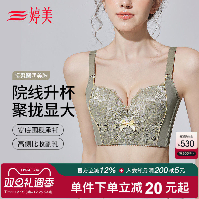 婷美2025新款院线款小胸聚拢内衣调整型提拉防垂收副乳蕾丝文胸