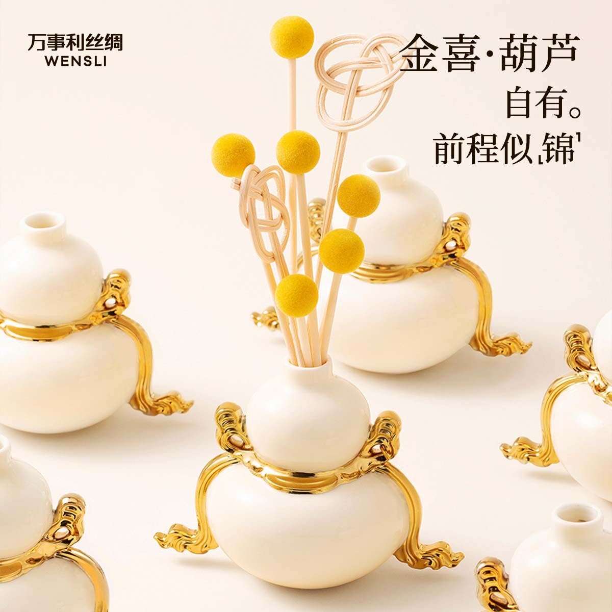万事利真丝丝巾女高端乔迁伴手送礼方巾葫芦香薰香氛万事金喜礼盒