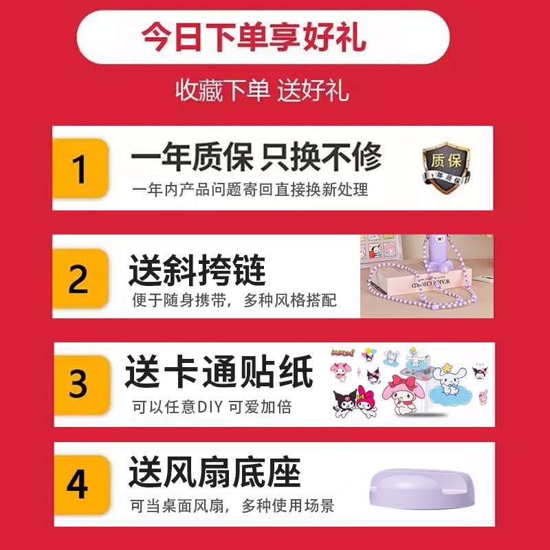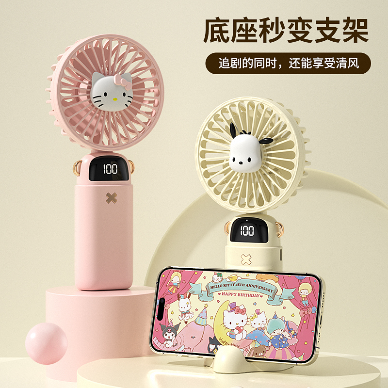三丽欧手持风扇库洛米正版卡通数显户外便携USB充电香薰小风扇