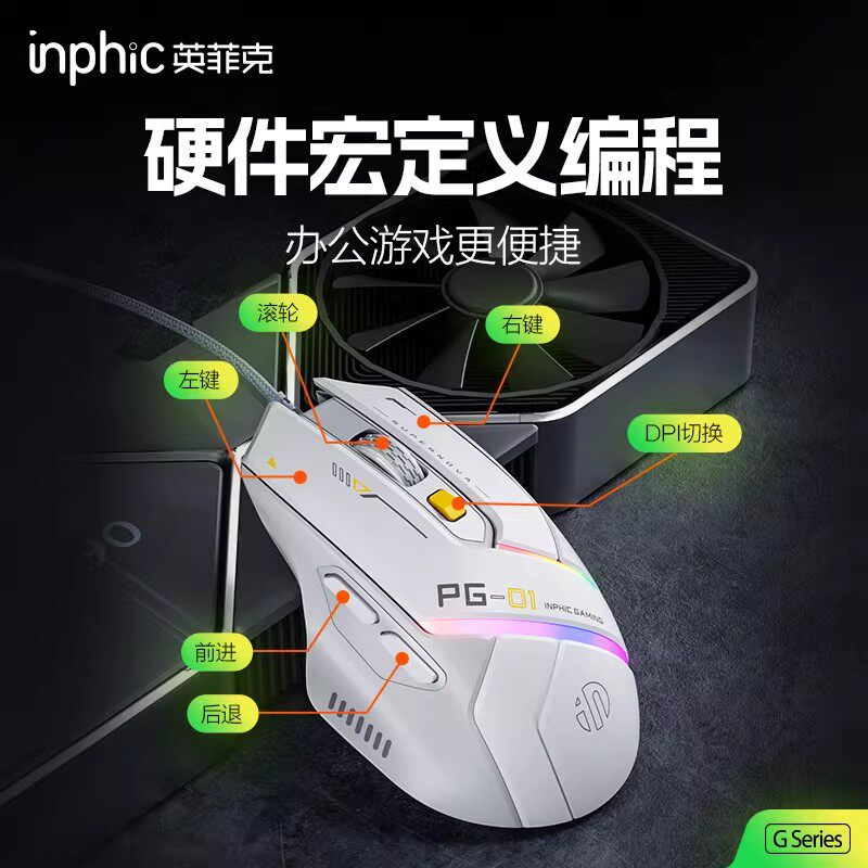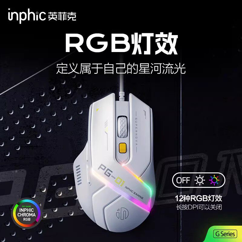 英菲克PG1有线轻量化鼠标电竞游戏专用RGB机械LOL吃鸡宏电脑办公