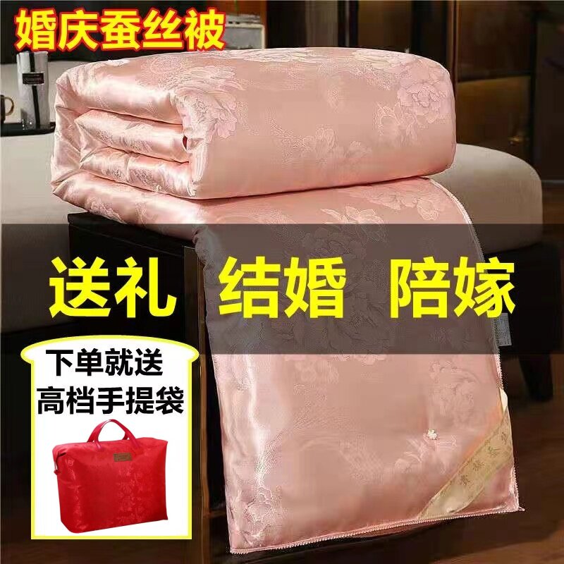 大红色结婚桑蚕丝被陪嫁喜被婚庆棉被芯双人加厚春秋冬结婚子母被