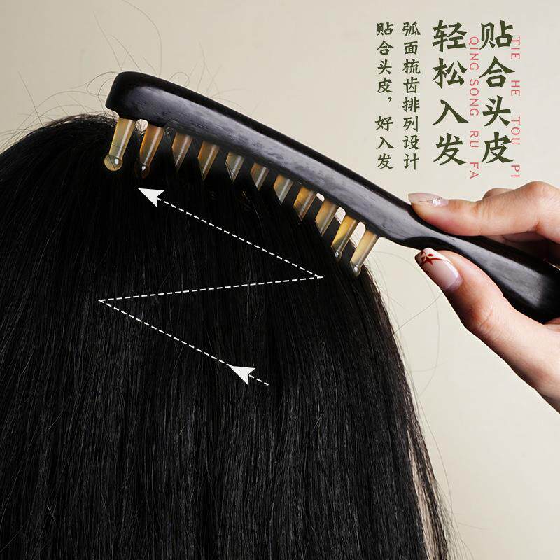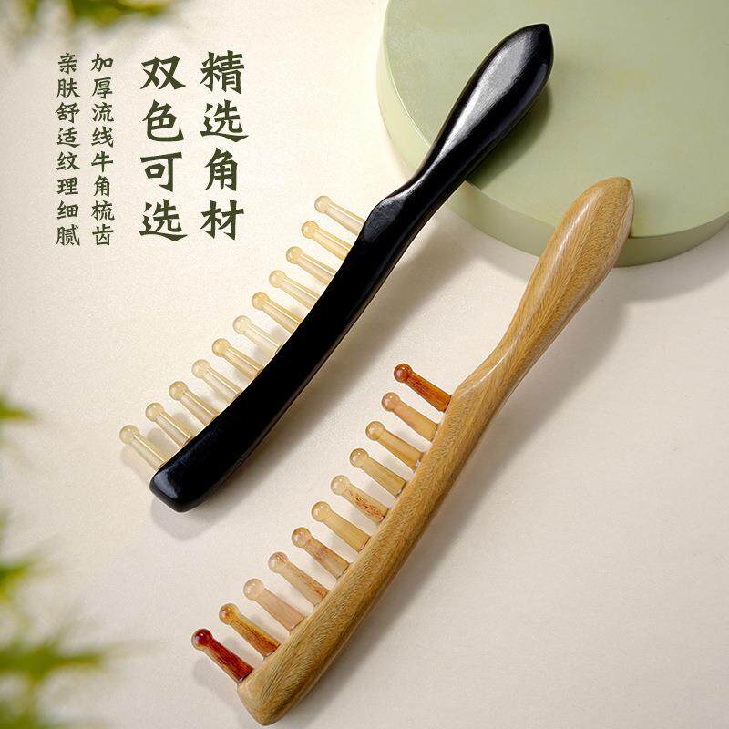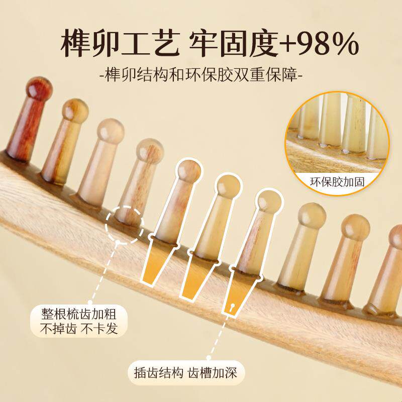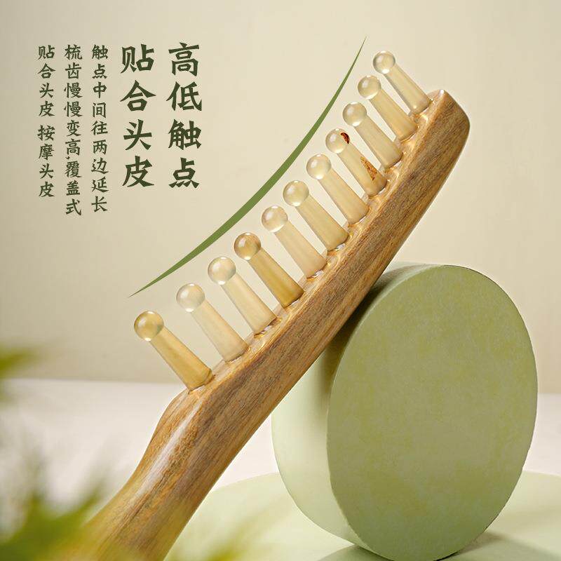 檀木齿疗梳子经络宽天然头皮按摩梳静电肩颈长柄头发梳防头部牛角