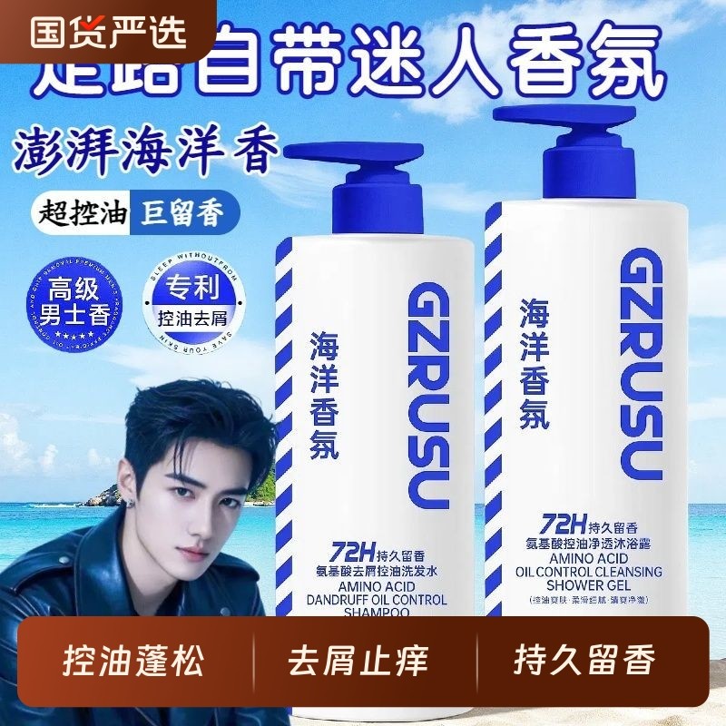 海盐海洋洗发水沐浴露控油止痒清爽去屑洗头膏沐浴乳套装正品旗舰