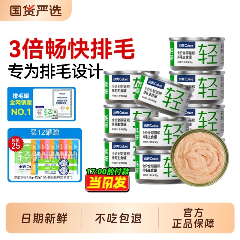 小壳罐头排毛猫咪主食零食车前子化毛功能湿粮主粮温和排毛猫罐头