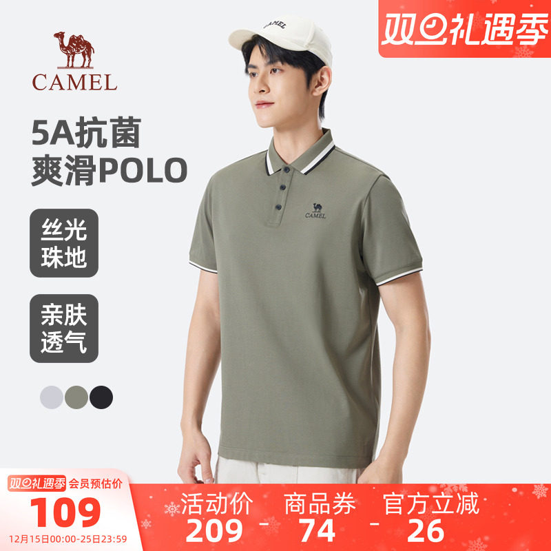 骆驼男装POLO衫男款户外夏季凉感透气弹力珠地棉翻领T恤上衣半袖