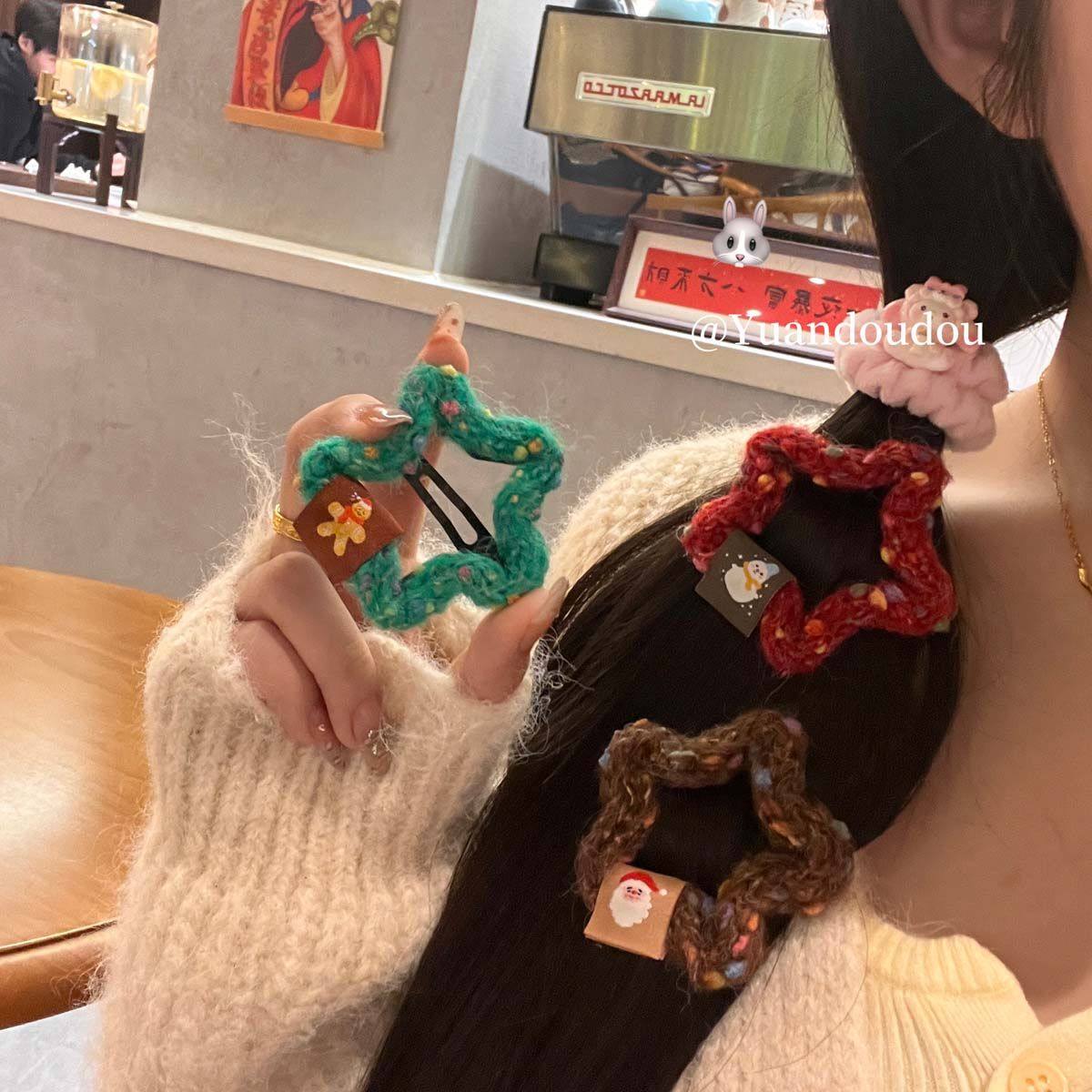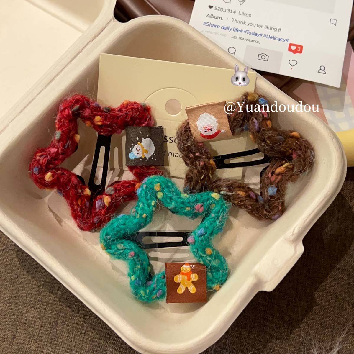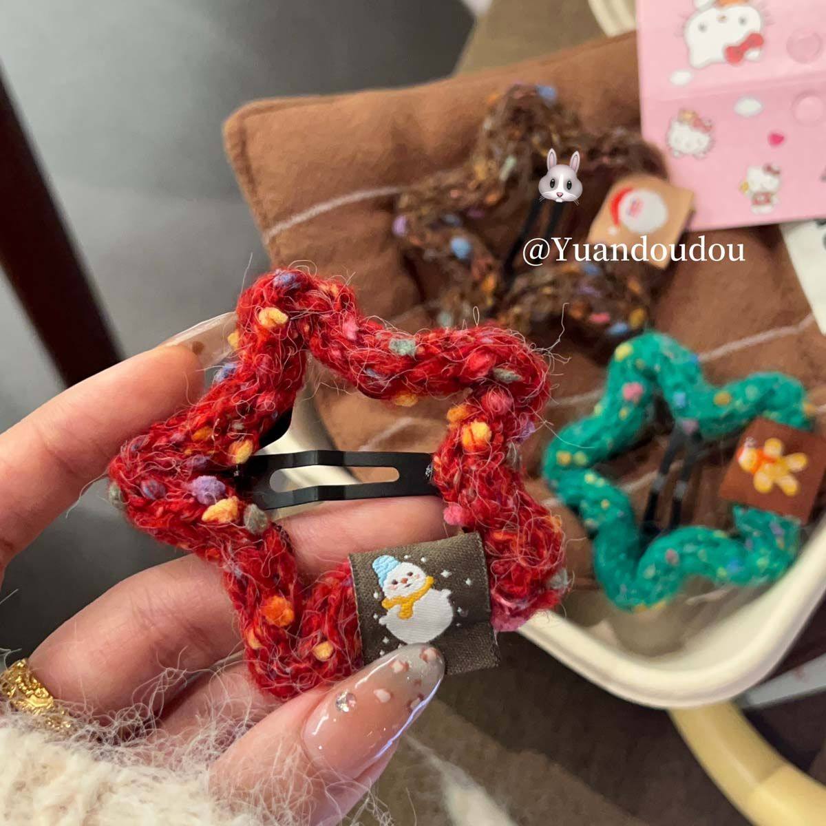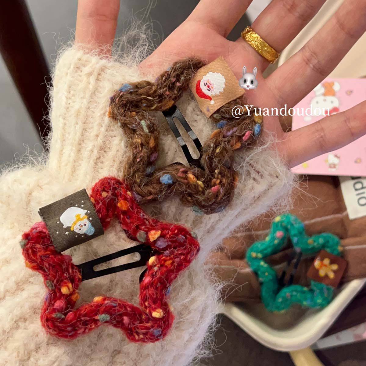 圣诞节毛线星星BB夹可爱发夹圣诞老人掰掰夹ins风百搭刘海夹发卡