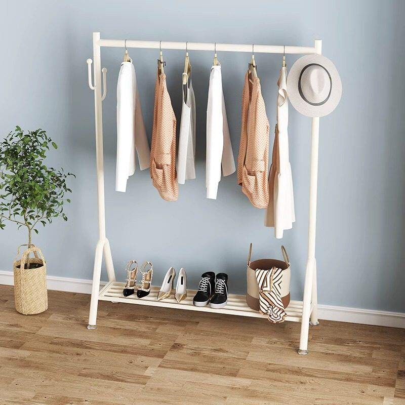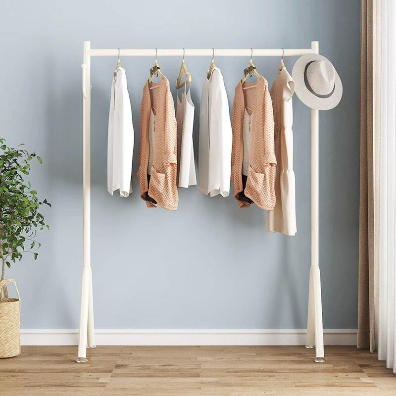 奶油风挂衣架落地卧室床边衣服置物架简易家用阳台晾衣杆衣帽架子