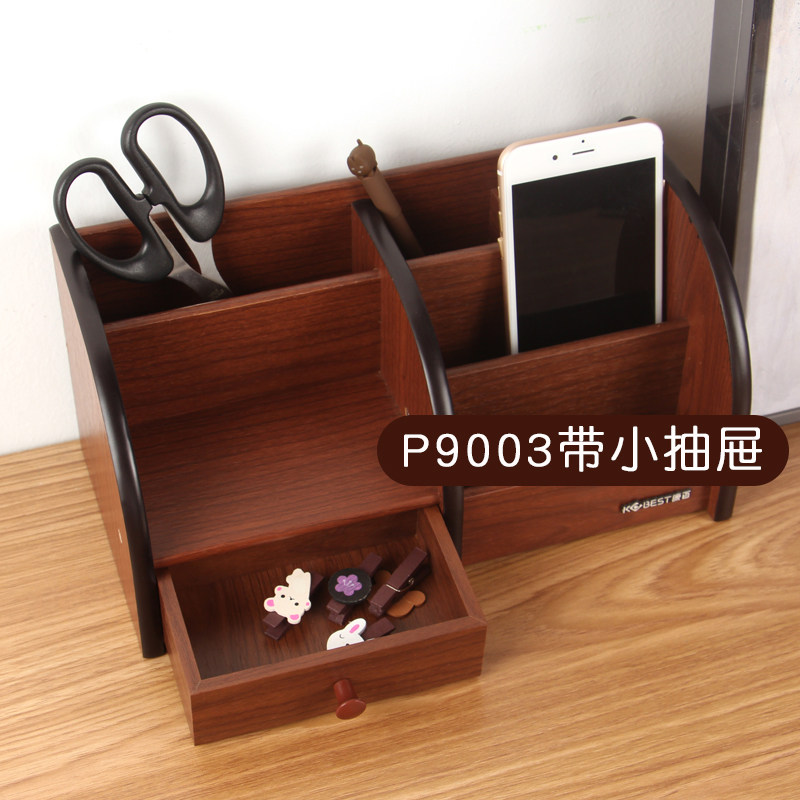 康百木制笔筒带抽屉办公室收纳盒名片座家居木质笔筒桌面收纳盒学生文具盒收纳笔架多功能木质大容量抽屉式