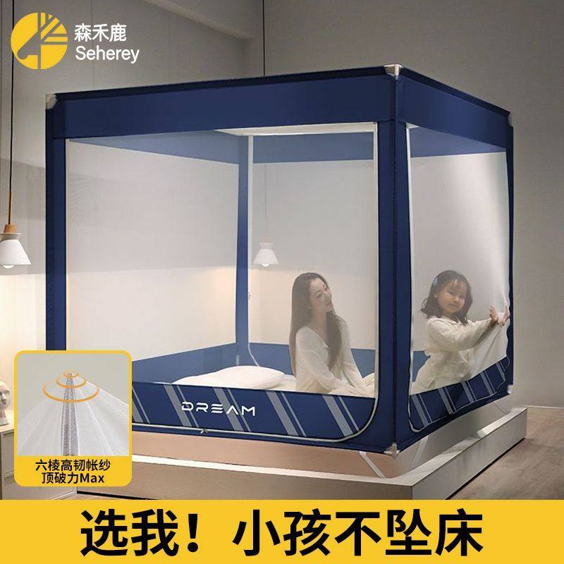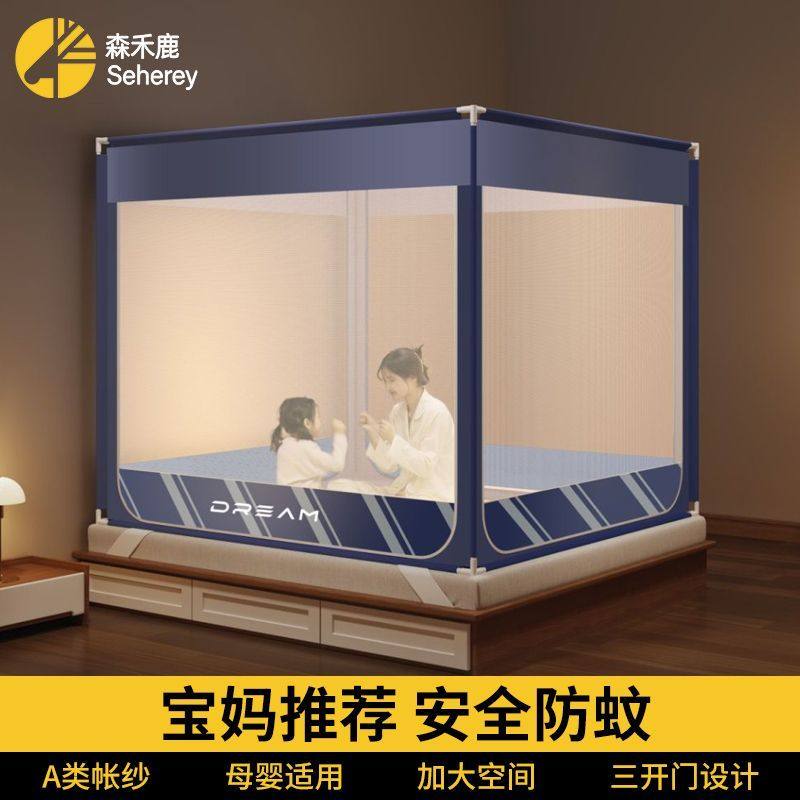A类蚊帐家用卧室防摔婴儿童床笠式全包新款三开门防蚊加粗全包围a