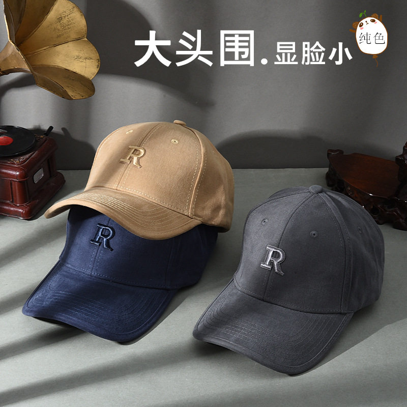 美式复古字母灰色棒球帽女高级感宽檐大头围显脸小百搭鸭舌帽子男