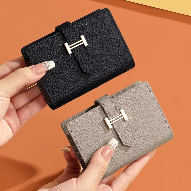 ELLE女包头层牛皮证件票夹牛皮卡包mini手持零钱隔层卡包多层卡夹