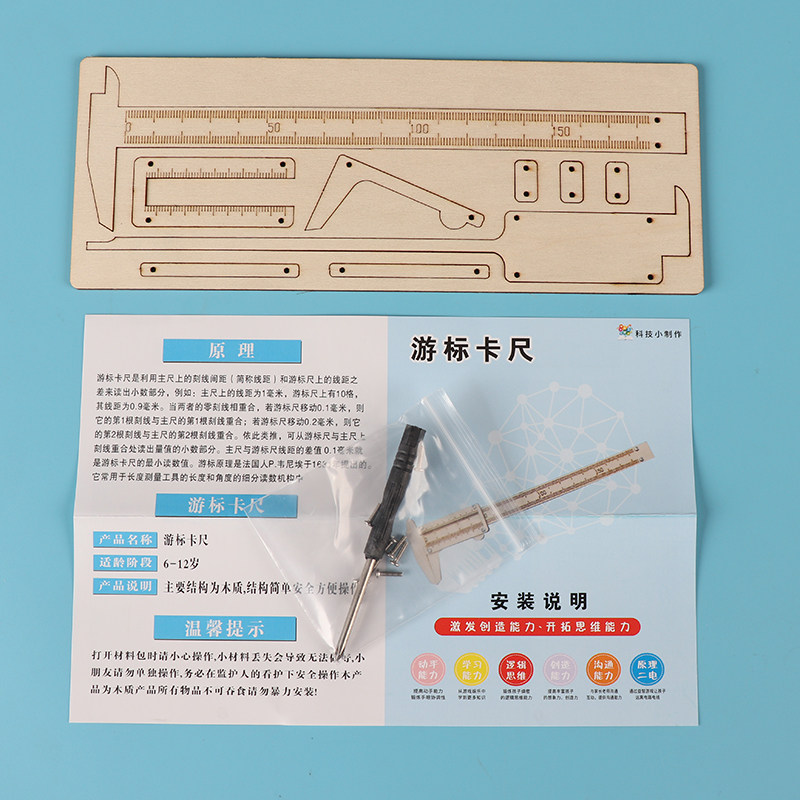 木质学生科技小制作小发明DIY游标卡尺手工拼装材料包科普器材