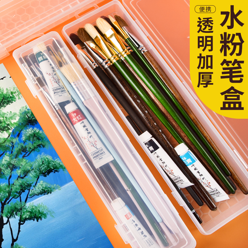 水粉笔盒毛笔收纳盒笔盒油画色彩塑料笔盒水彩丙烯笔盒美术生专用透明简约加厚便携