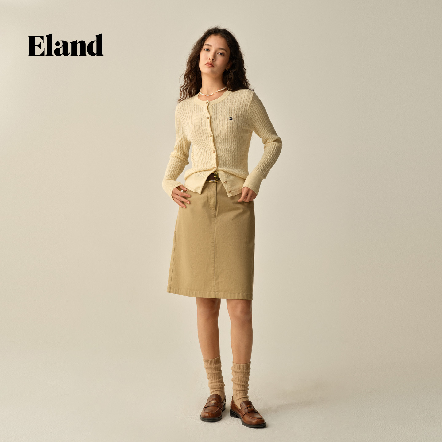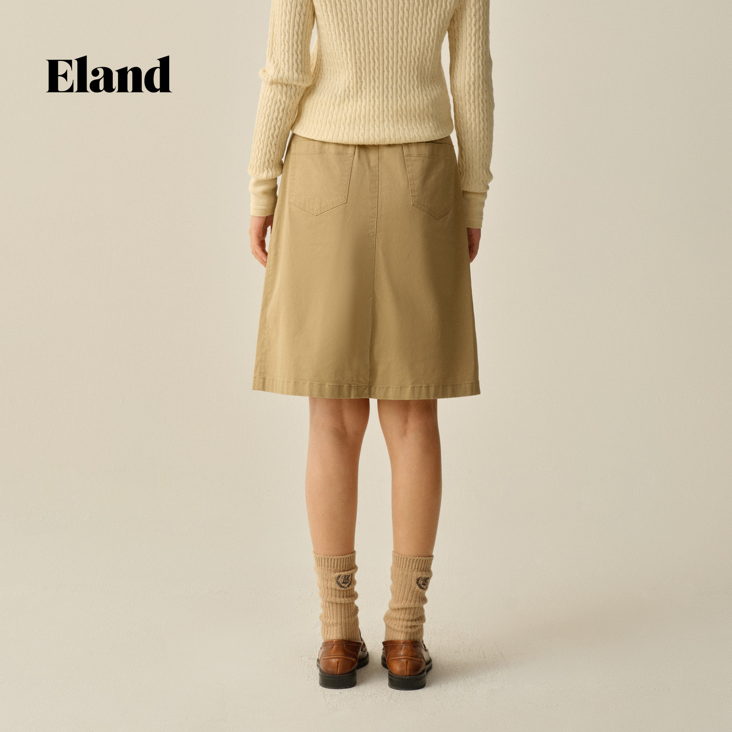 Eland衣恋半身裙女纯色棉质休闲通勤A字裙2025冬季新款